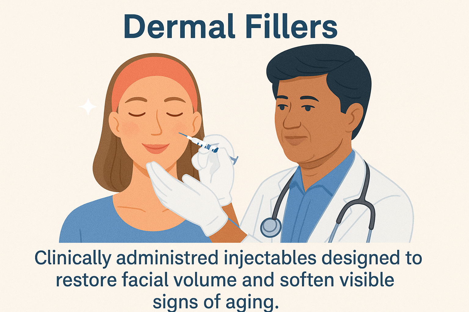 Clinically administered injectables designed to restore facial volume and soften visible signs of aging.